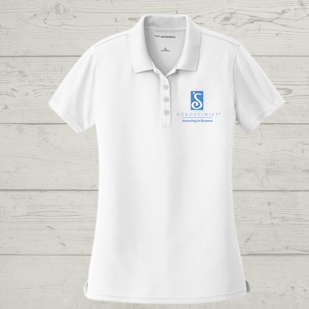 Empower yourself with our durable and stylish Dry Zone Polo with either the Soroptimist or El Centro Chapter logo embroidered on the chest. Made from moisture-wicking 100% polyester with UPF 30 protection, this polo keeps you dry and comfortable all day. Featuring a tag-free label, flat knit collar, and pearlized buttons, it combines style with function. Choose from classic white or Carolina blue and personalize your polo to showcase your support for women’s empowerment.
